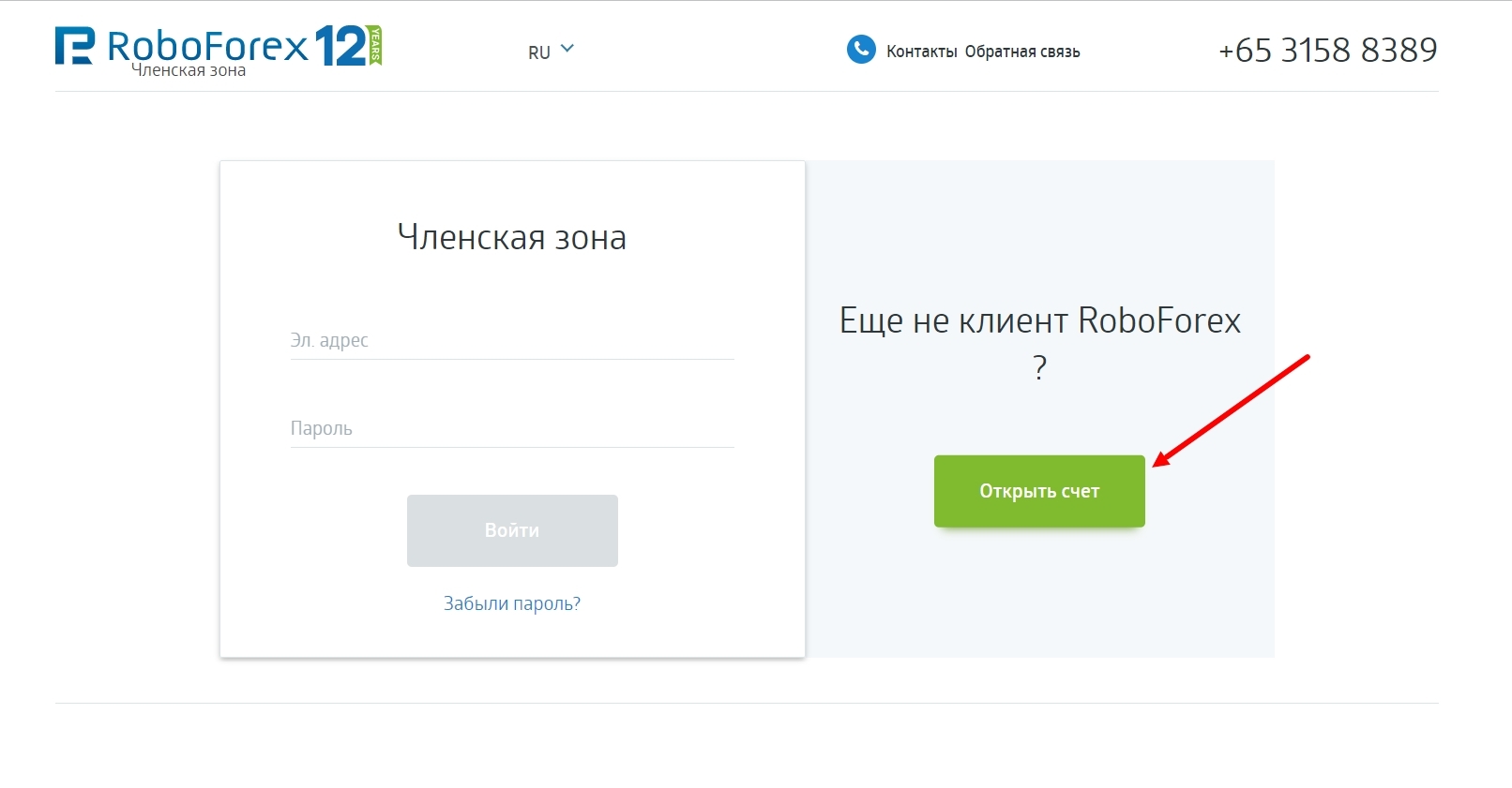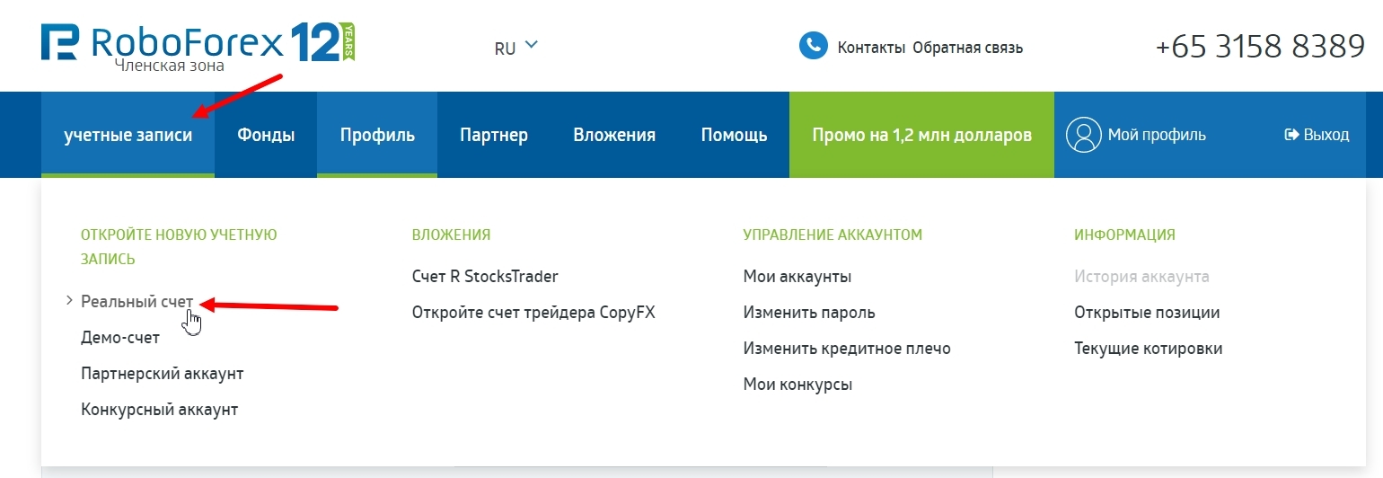 Нажимаете "Открыть счет", как указано на скриншоте ниже.